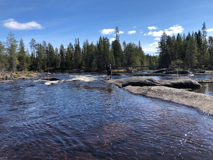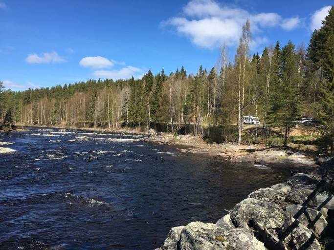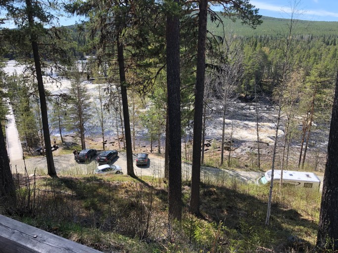 Vi valde att stå nere vid älven, men man kan även parkera uppe vid restaurang Wold river.