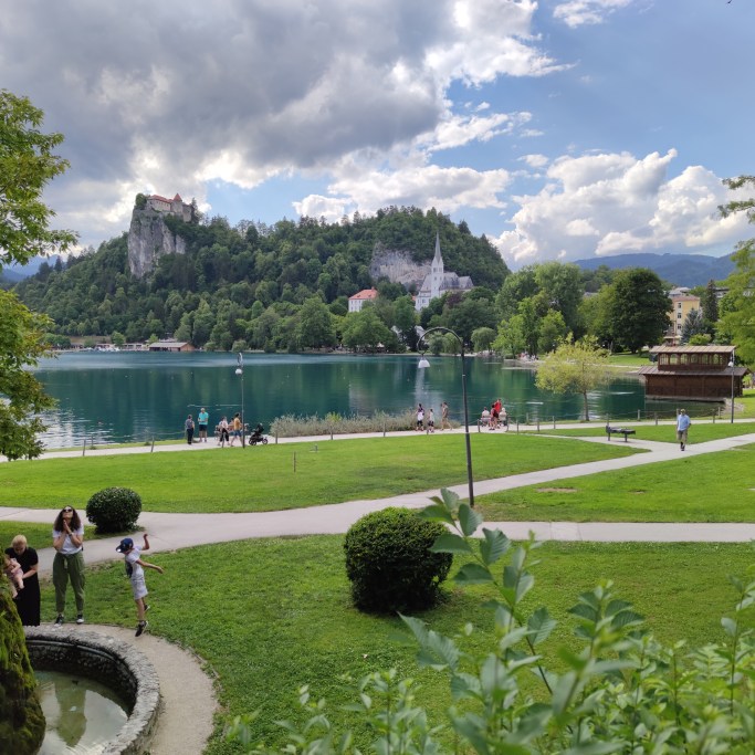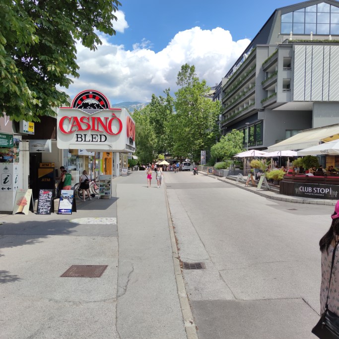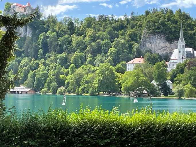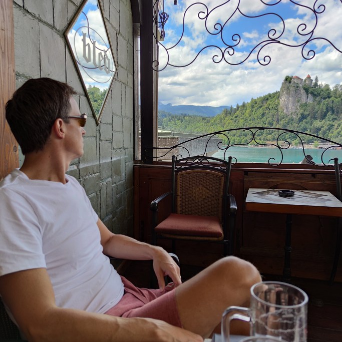 Bled centrum har många fina restauranger med fantastisk utsikt över sjön.